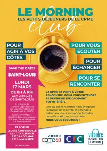 Le Morning CPME 68 – Petit déjeuner bimestriel de proximité – Lundi 17 mars de 8h00 à 10h00 à Saint-Louis