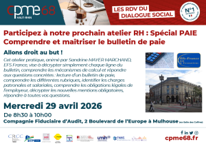 Cet atelier pratique, animé par Sandrine MAYER MARCHAND, EFS France, vise à décrypter simplement chaque ligne du bulletin, comprendre les mécanismes de calcul et répondre aux questions concrètes : lecture d’un bulletin de paie, comprendre les différentes rubriques, identifier les charges patronales et salariales, comprendre les obligations légales de l’employeur, décrypter les nouvelles mentions obligatoires, répondre à toutes vos questions.